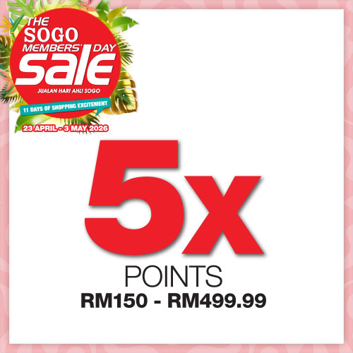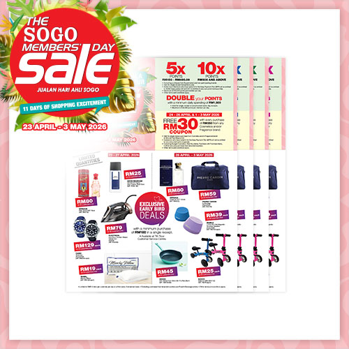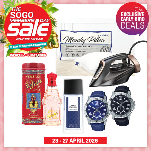 View allDiscover the best deals from our exciting events like ‘Thrilling Tuesday,’ ‘Terrific Thursday,' ‘Double Digits Days,’ and 'Pay Day Specials' as well as during public holidays and other special occasions. Indulge in luxury fragrances, fashion, and lifestyle products. Follow us at @sogomalaysia, and don’t forget to scan the QR codes to stay connected. Don’t miss our live sessions!