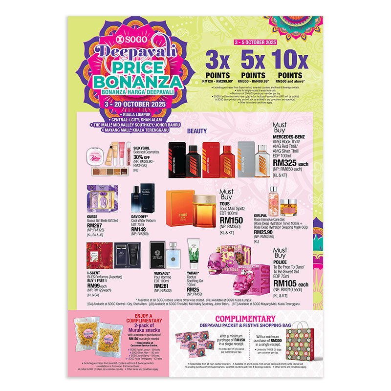 Any return requests must adhere to the Return & Exchange policy as outlined on the SOGO Malaysia website. Return from this promotion are only accepted if both items purchased under this offer are returned together.