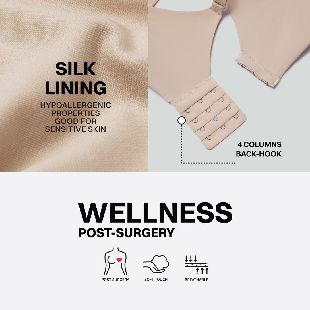 Featuring both front and back closure options, our bras are easy to wear and remove. This customizable fit adapts to your body, providing convenience and support throughout your recovery.