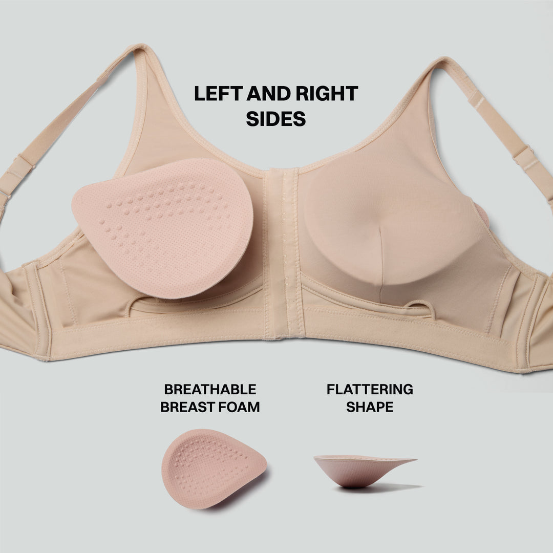 Our mastectomy bra includes soft, cotton-lined internal pockets designed to securely hold prostheses or breast forms. This thoughtful design ensures maximum comfort against your skin, allowing you to feel confident and secure.