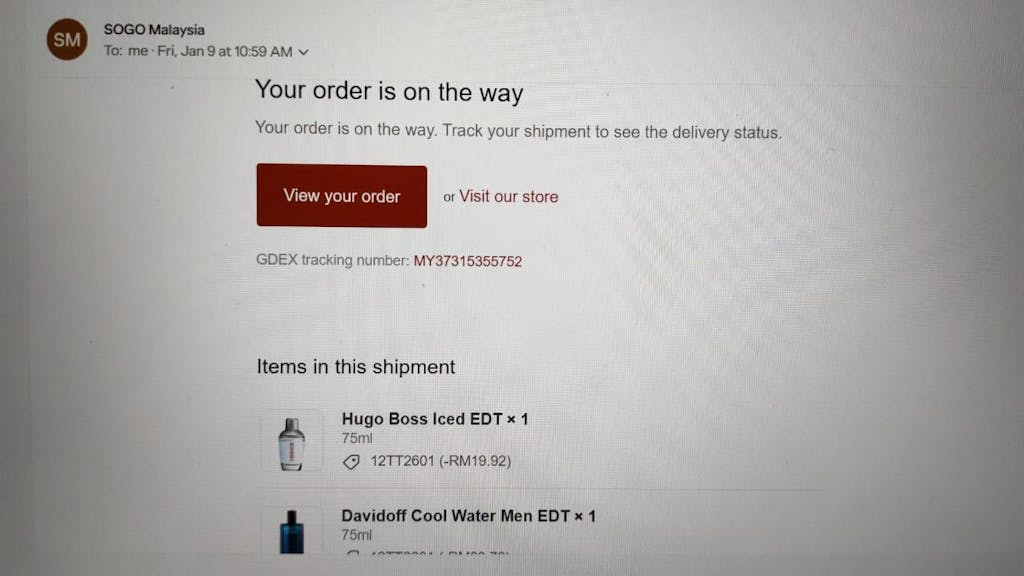 Self Pickup guarantees your order will be in stock at SOGO Kuala Lumpur, as we'll hand-pack your order to be placed at the Lower Ground Floor Customer Service Counter.